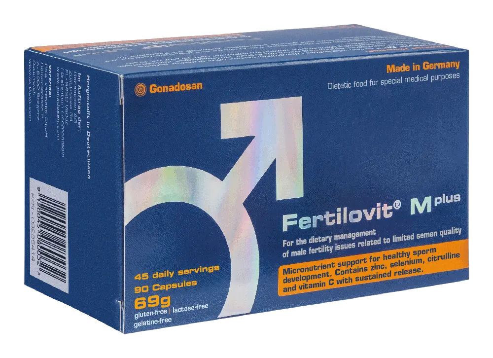 Фертиловіт М плюс – це біологічно активна добавка, яка підходить всім чоловікам, які планують зачати дитину. Фертиловіт М плюс сприяє поліпшенню якості сперми і фертильності. Застосовувати після консультації з лікарем. Фертиловіт М плюс особливо рекомендується приймати тим чоловікам, які палять, постійно піддаються стресам і незбалансовано харчуються.